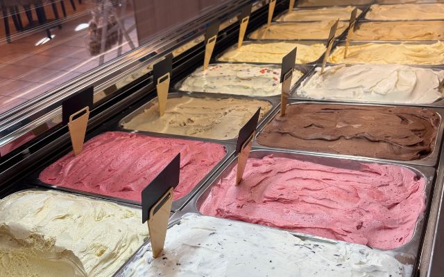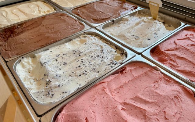 Hier haben Sie die Wahl zwischen verschiedenen Eissorten, wie Amarena-Kirsch, Haselnuss, oder Stracciatella, die unsere Konditorinnen und Konditoren frisch für Sie zubereiten.